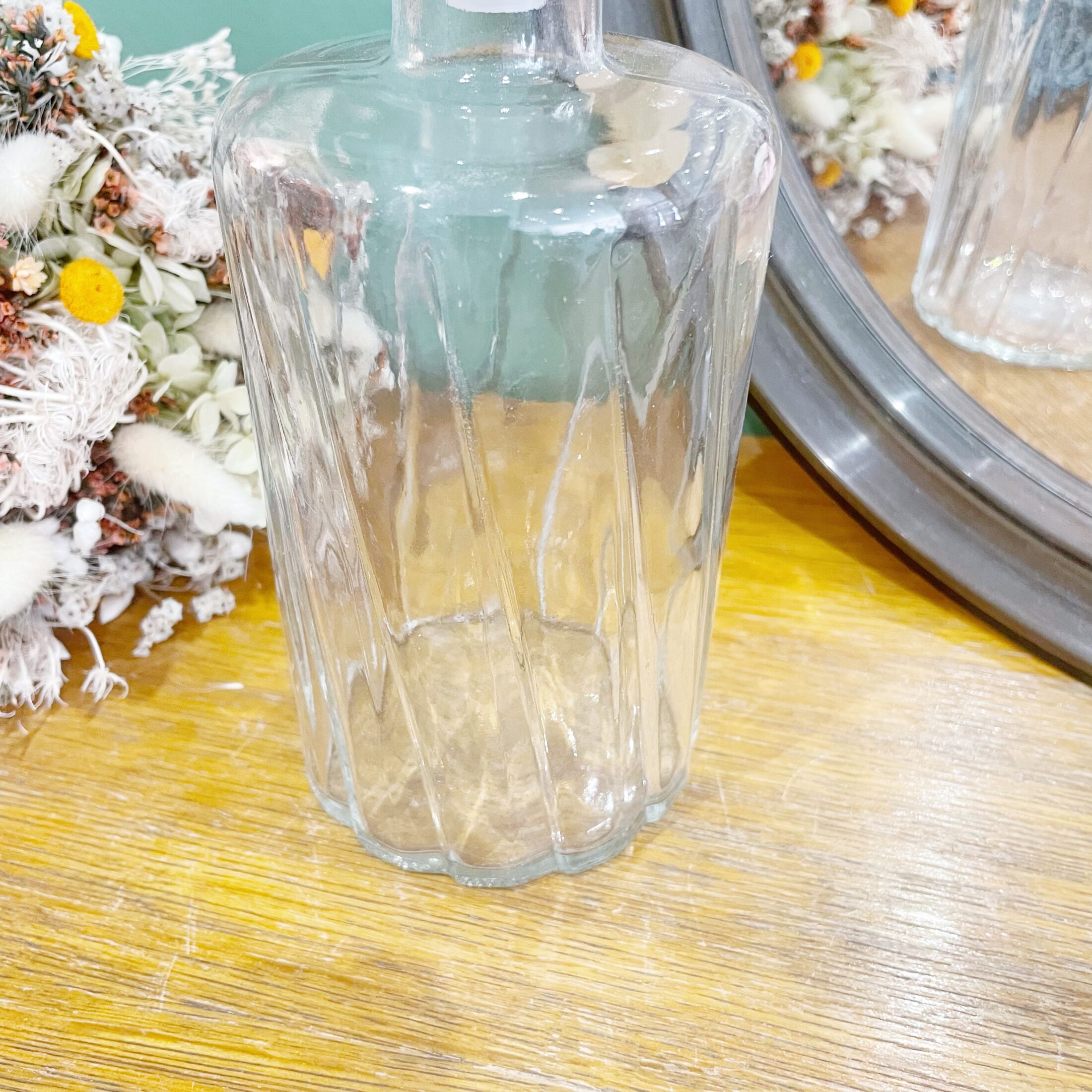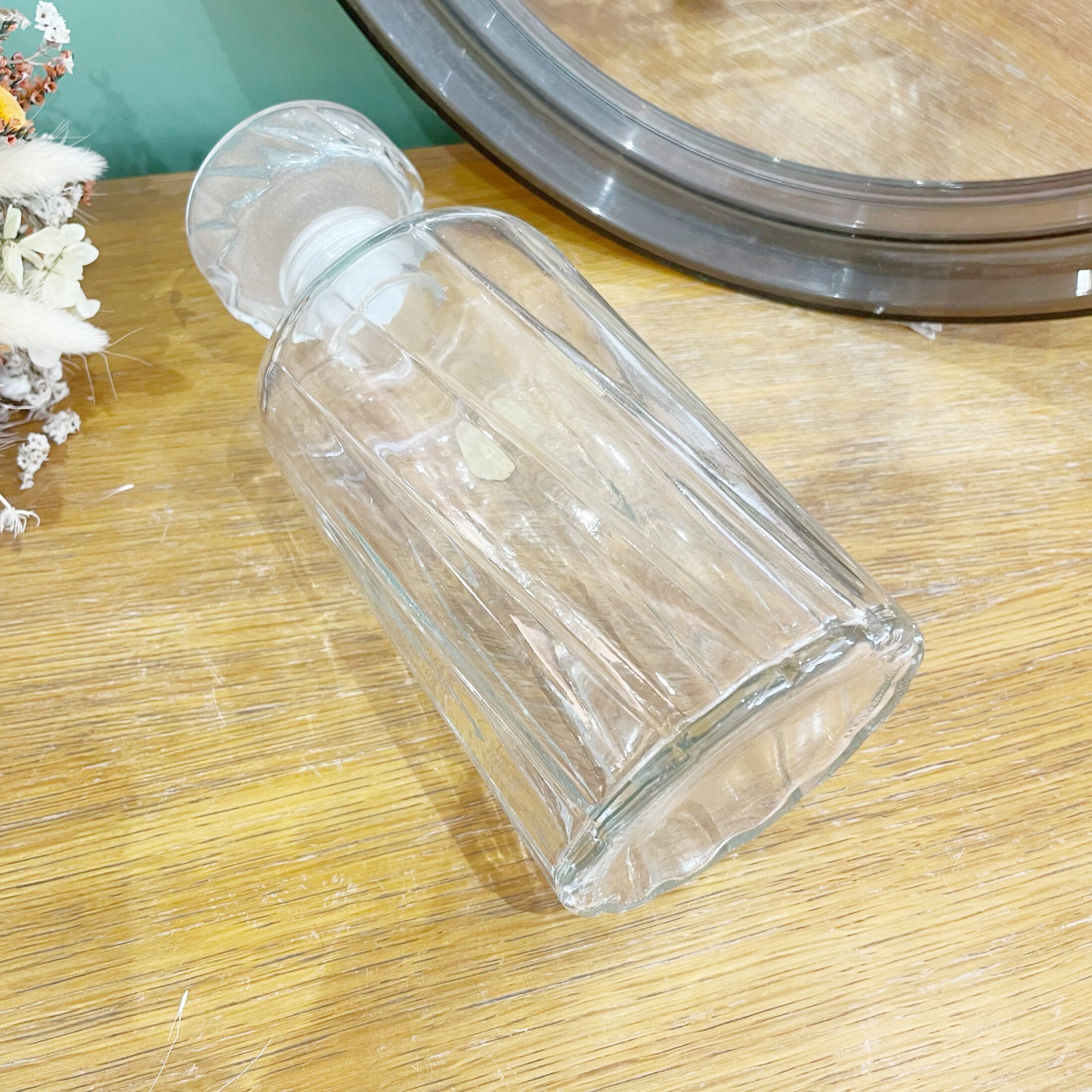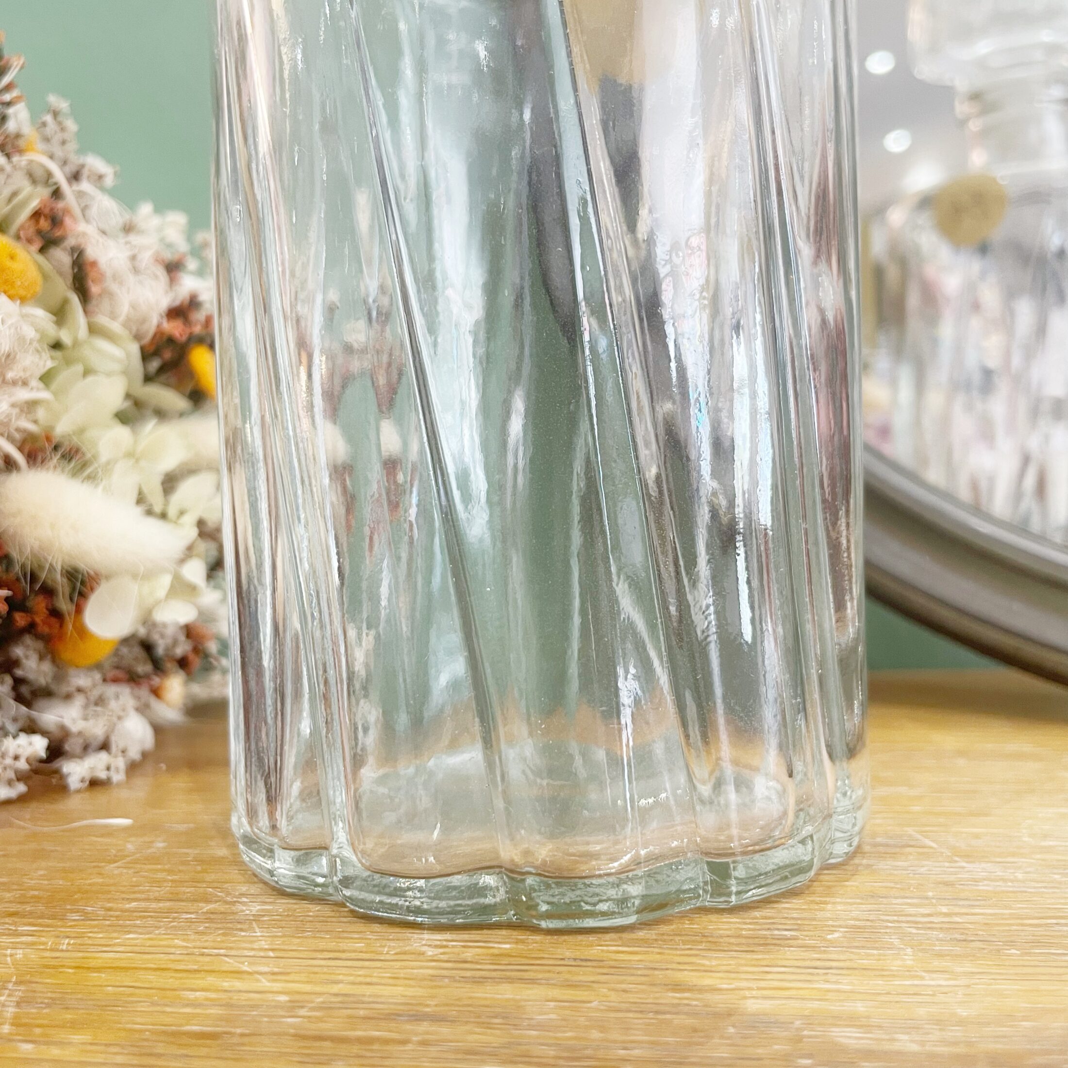 Cette carafe en verre nous séduit par sa forme ronde ainsi que son aspect nervuré qui lui donne du relief, et qui l’a rend très intéressante. On adore !