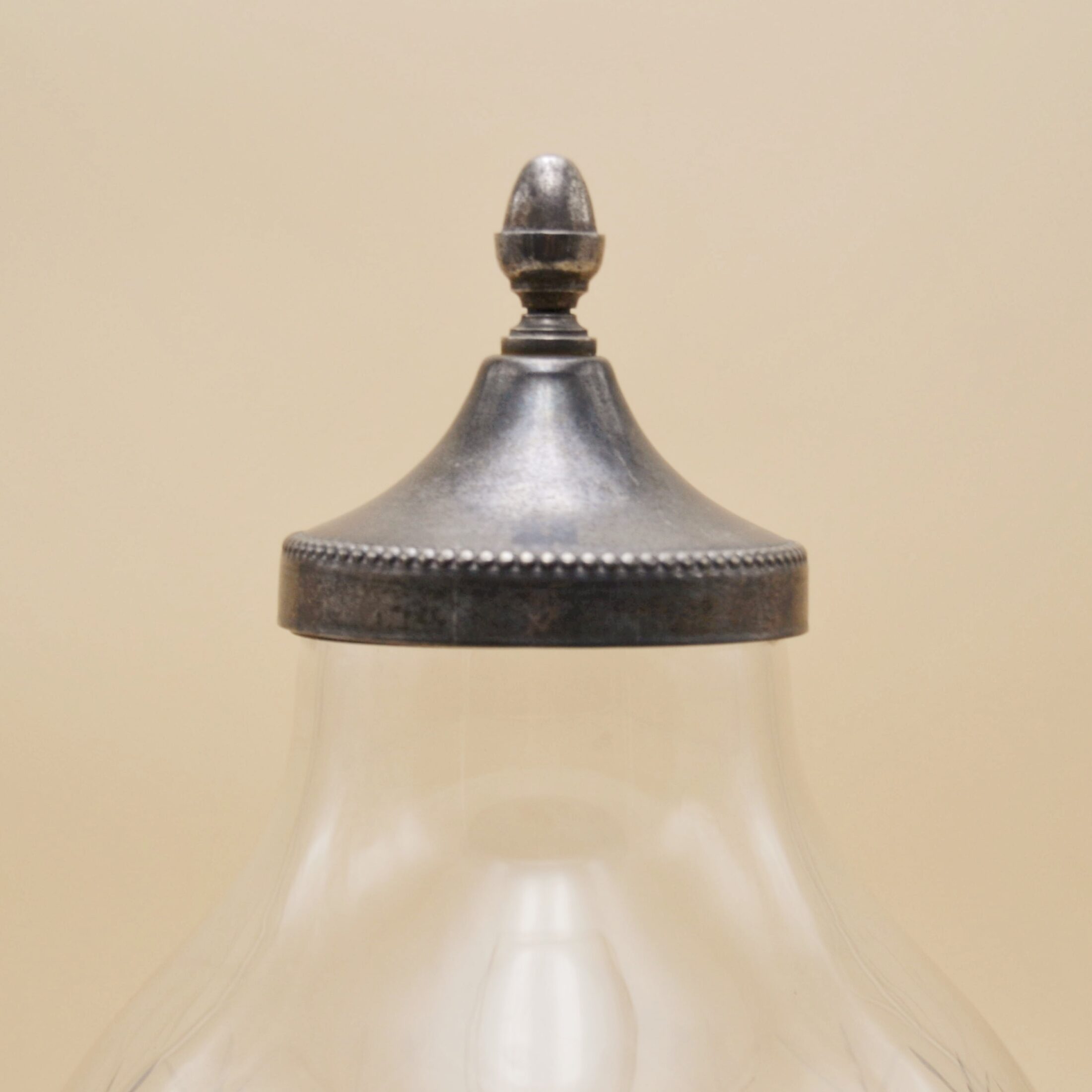 Son corps en cristal taillé capte la lumière avec éclat, révélant de jolis jeux de transparence et de reflets, tandis que ses éléments en métal apportent une touche d’élégance classique. Pratique et décorative, elle est parfaite pour servir eaux aromatisées, jus frais ou limonades lors de grandes tablées, tout en devenant la pièce maîtresse de la table ou du buffet. Une belle alliance entre fonctionnalité et allure vintage pour sublimer vos moments conviviaux.