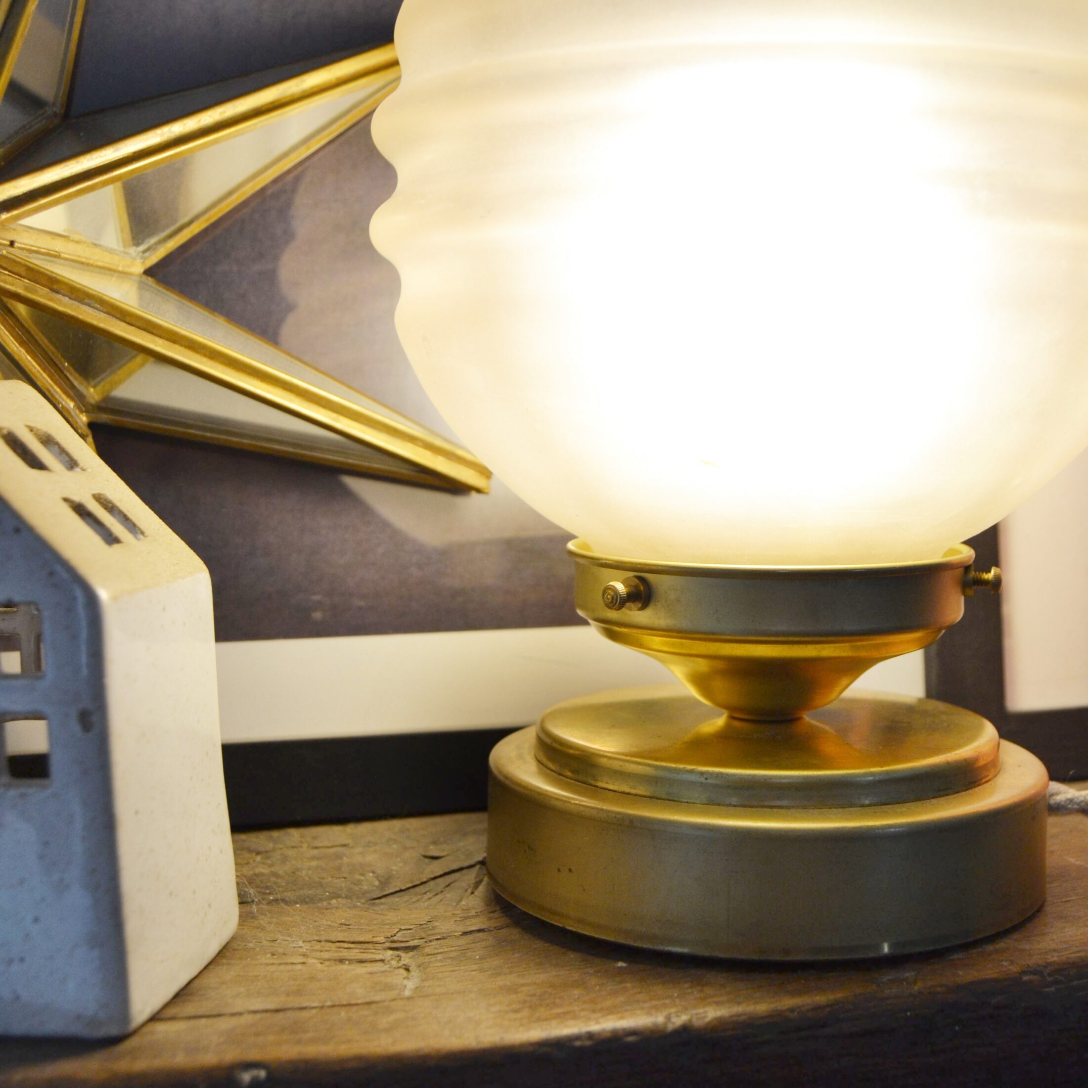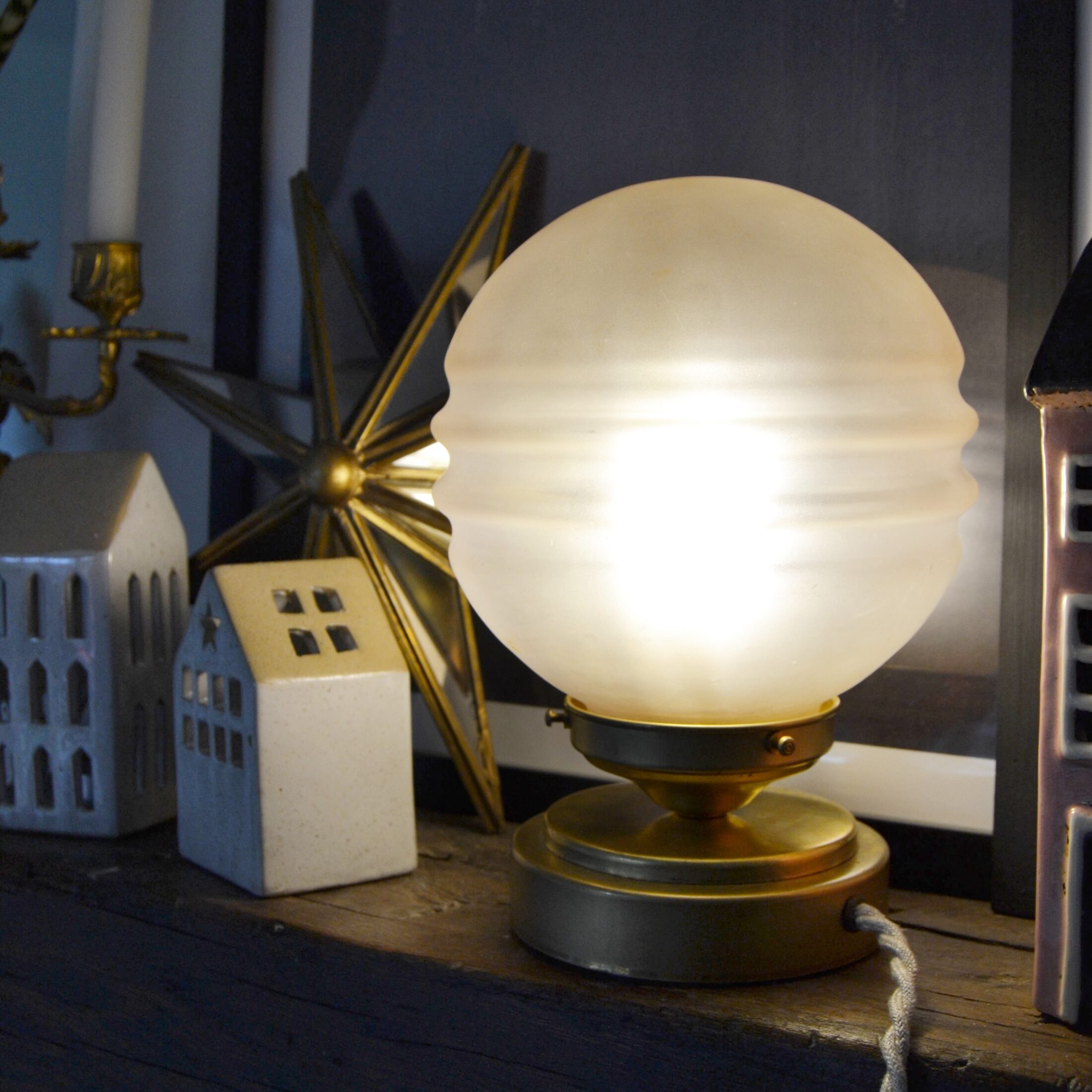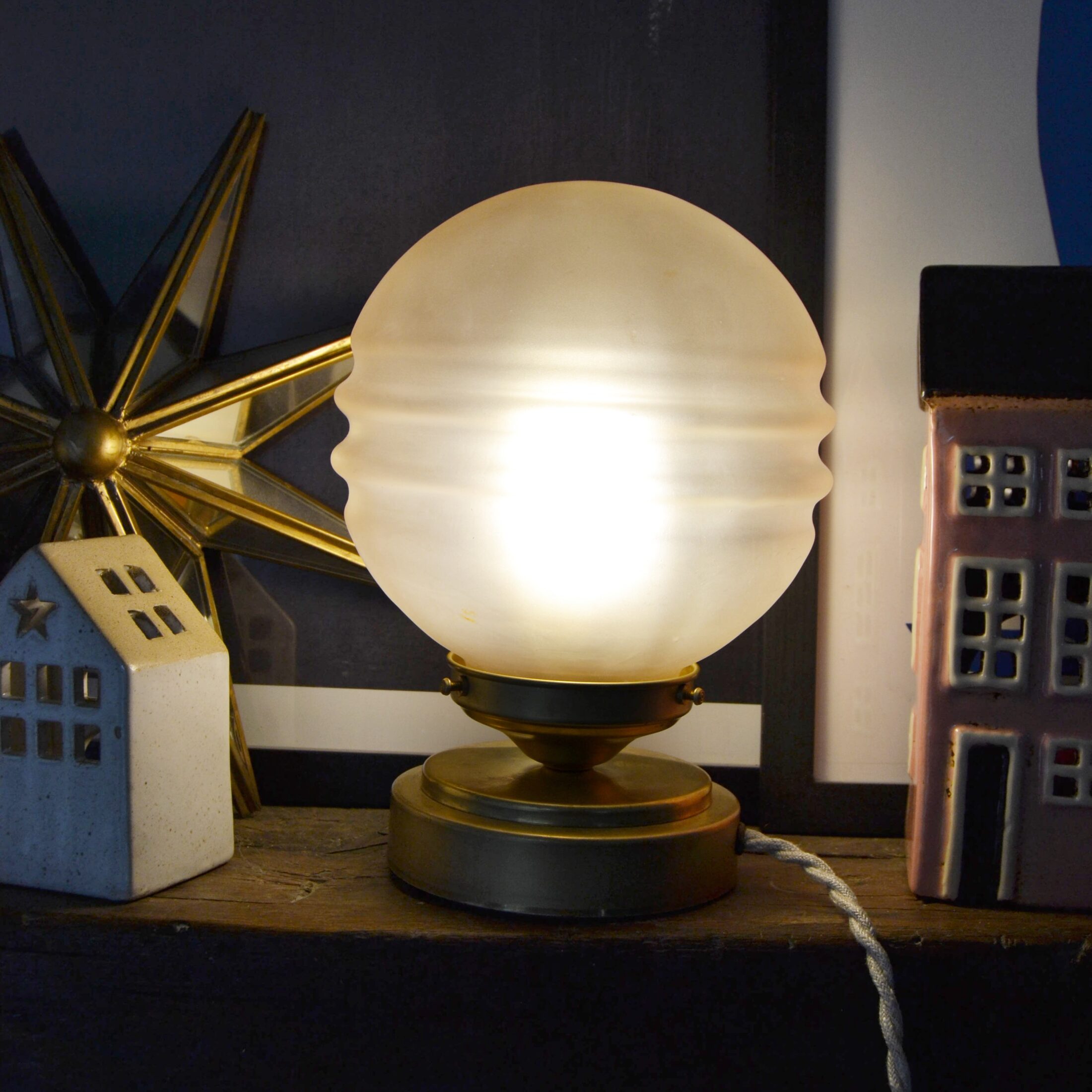 Tout est parti de ce beau globe chiné, avec l’envie de lui donner une seconde vie… Cette lampe à poser, avec son globe légèrement rosé, est une petite pépite, unique et tendance, avec sa touche vintage. Toute l’électricité et les parties en laiton sont neuves et aux normes, seul le globe est de seconde main.