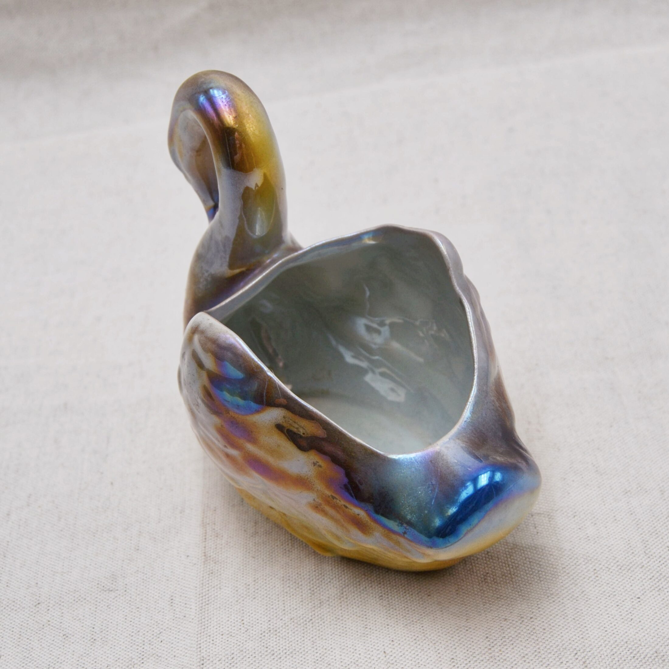 Ce magnifique cygne iridescent est kitch à souhait, on adore ! En pot à crayon, pour des cartes de visites ou même pour y mettre une petite plante, ce cygne sera parfait dans toutes les situations.