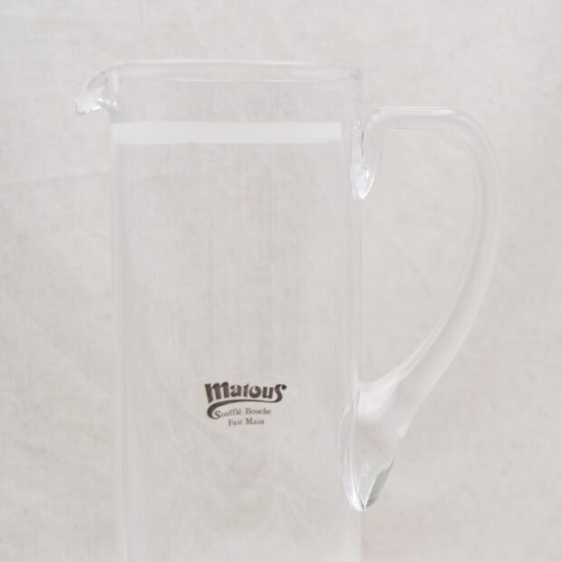 Ce petit pichet en verre nous séduit par sa forme originale, évasée sur le bas et son bec verseur qui nous rappelle nos cours de chimie, au lycée !