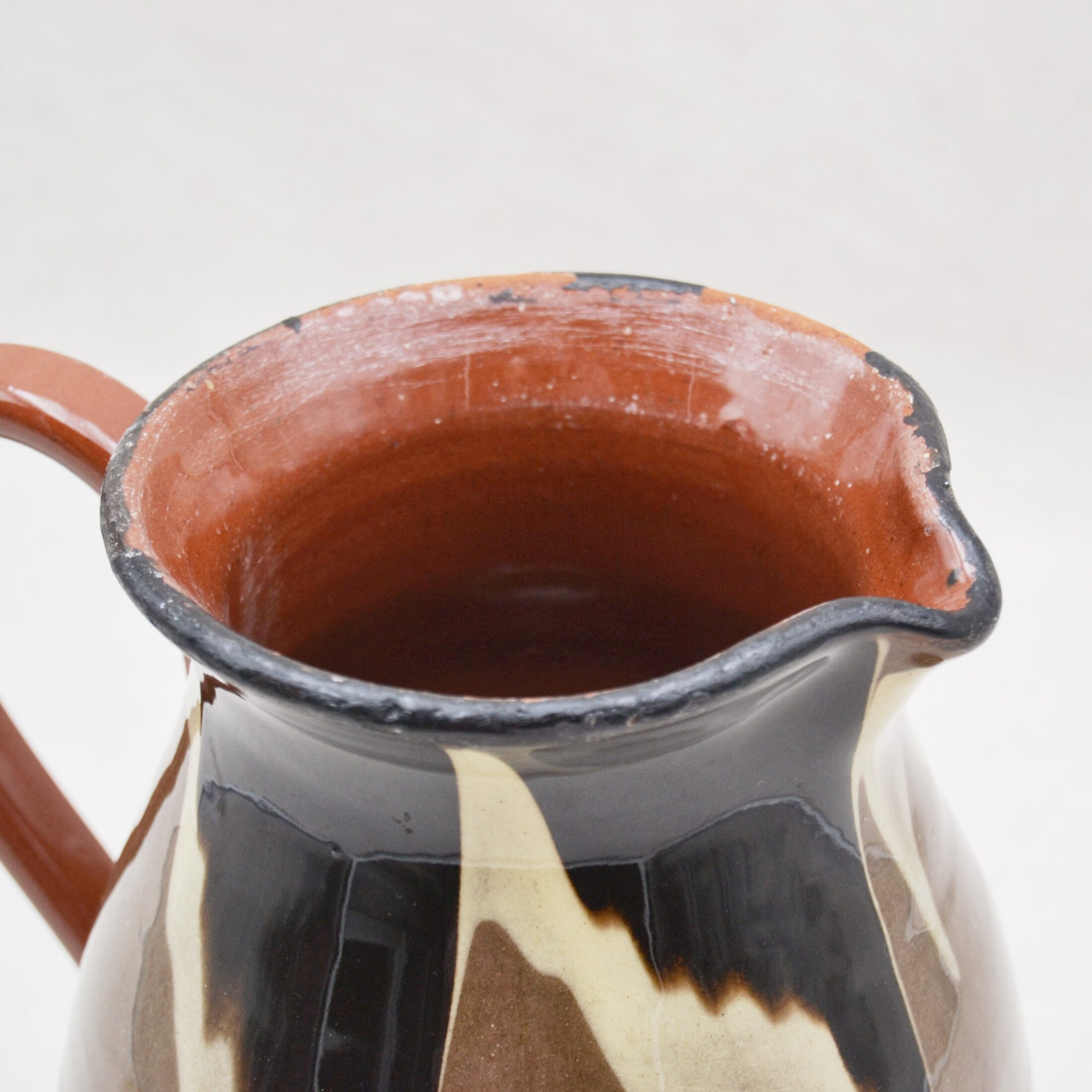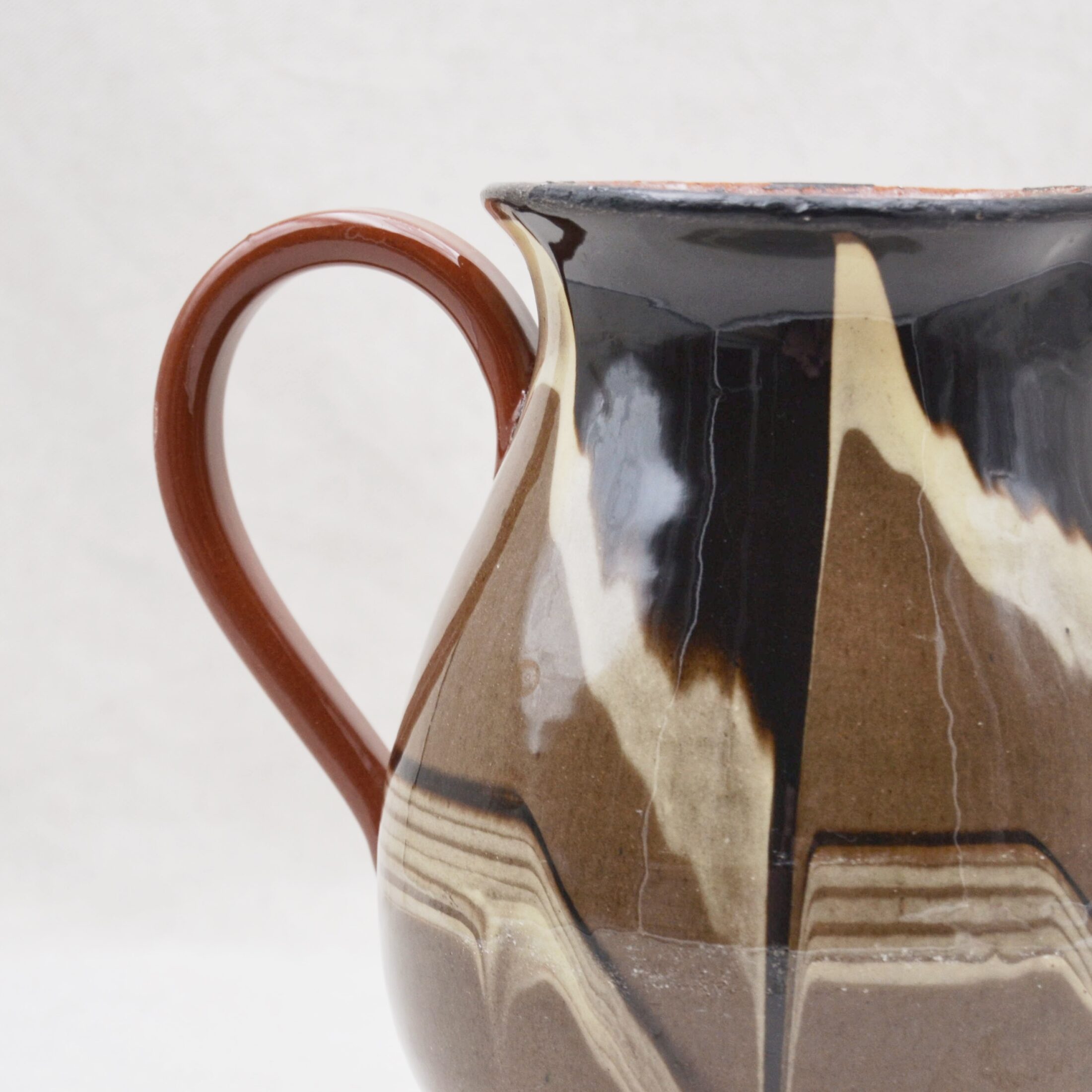 Ce joli pichet nous offre des motifs abstraits et originaux, que l’on adore ! Sa grande contenance lui permet d’être à la fois un pichet mais aussi un vase. A noter, quelques manques d’émail noir sur le col.