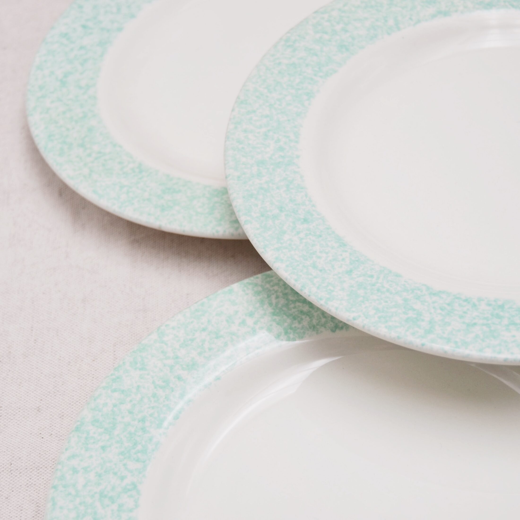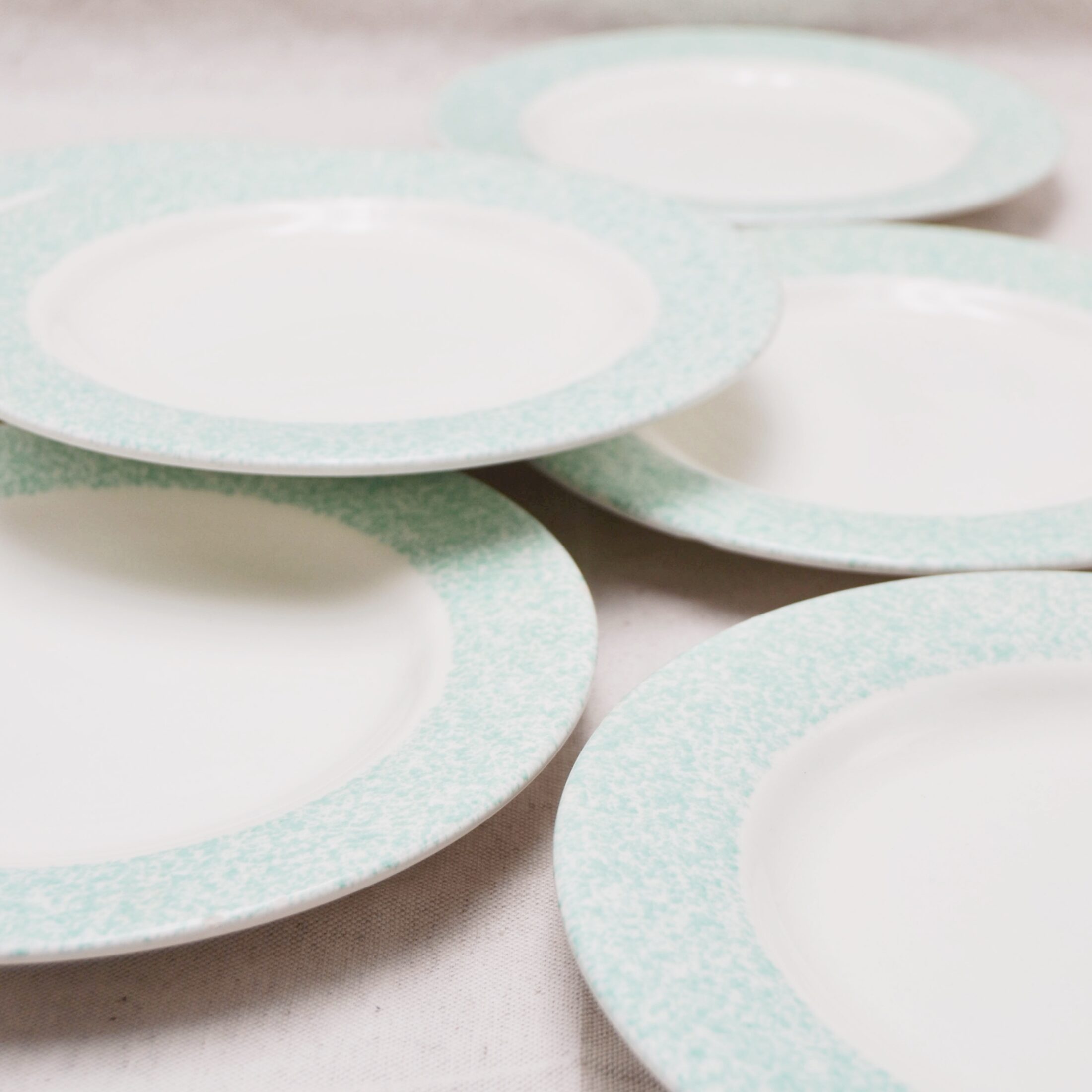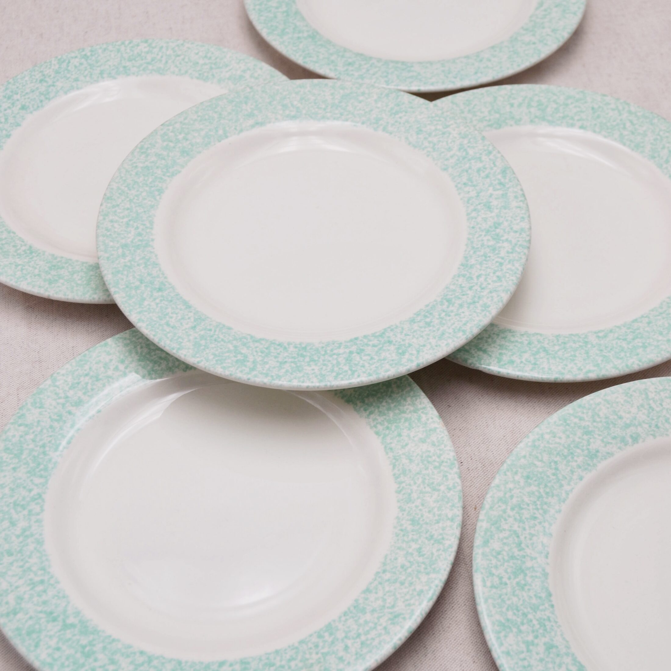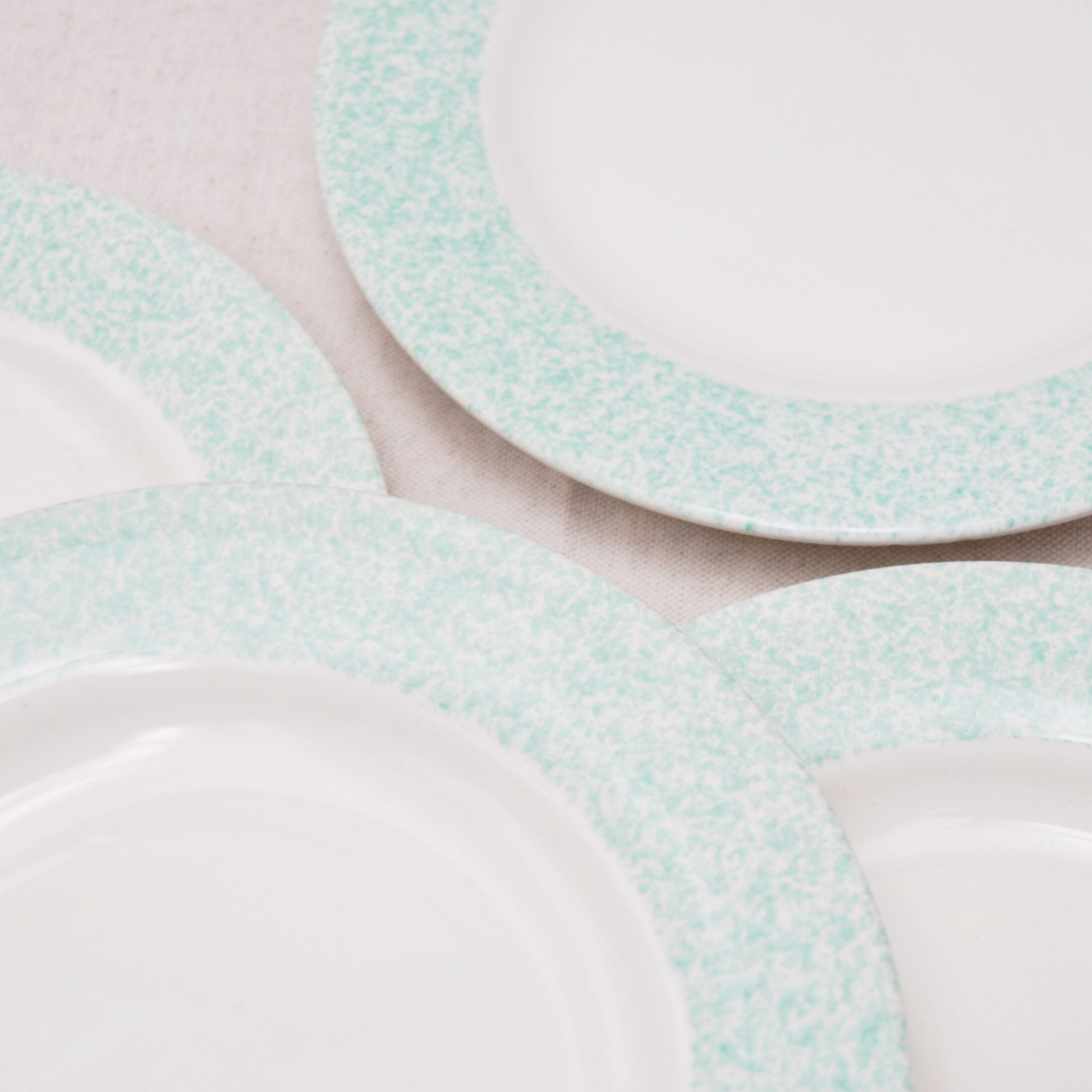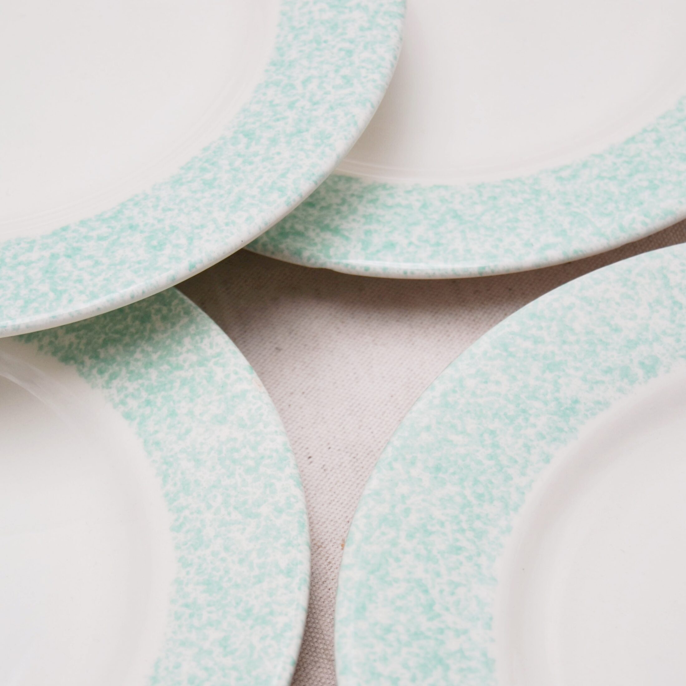 Ces assiettes à dessert apportent une touche de peps et d’originalité grâce à leur rebord bleu turquoise moucheté, que l’on adore !