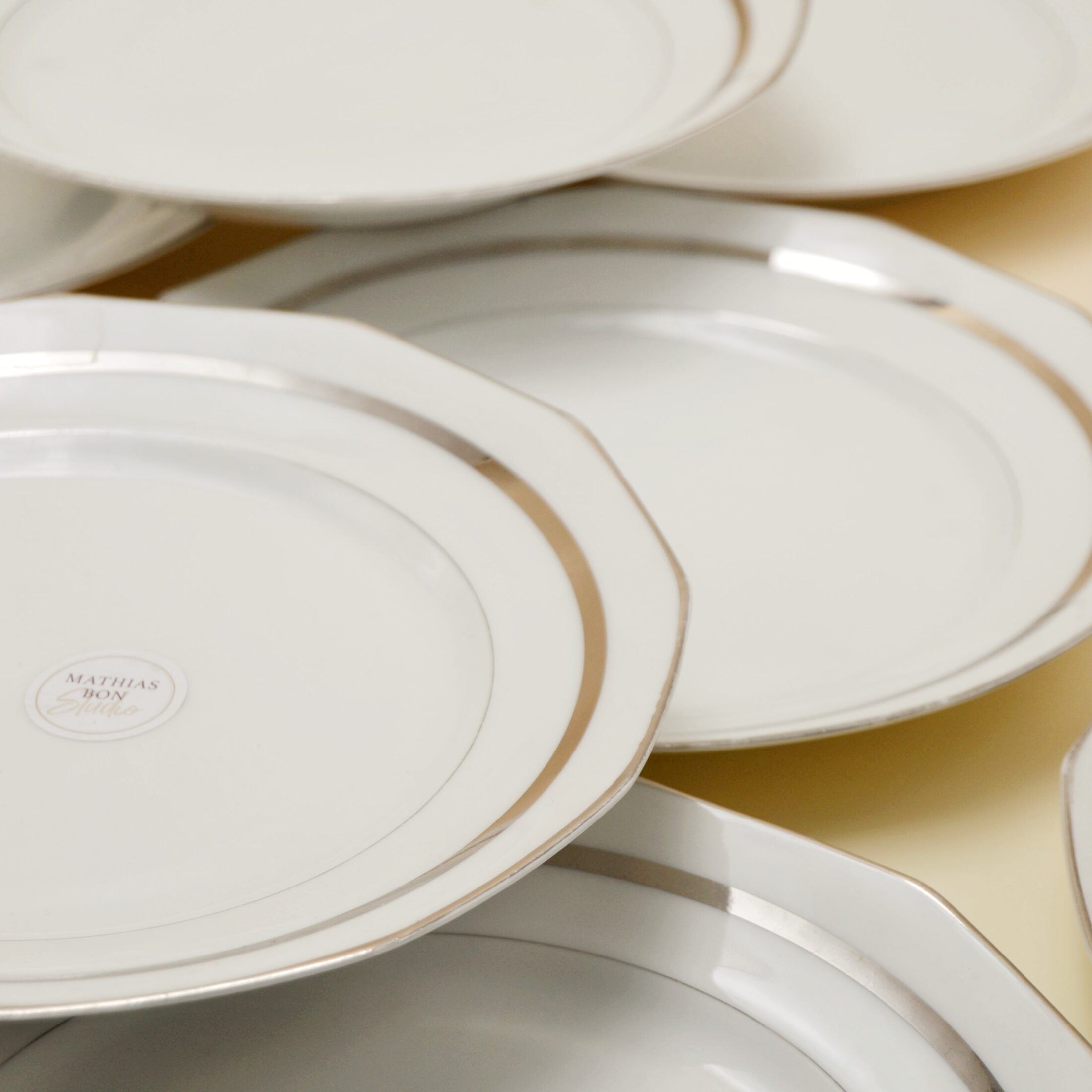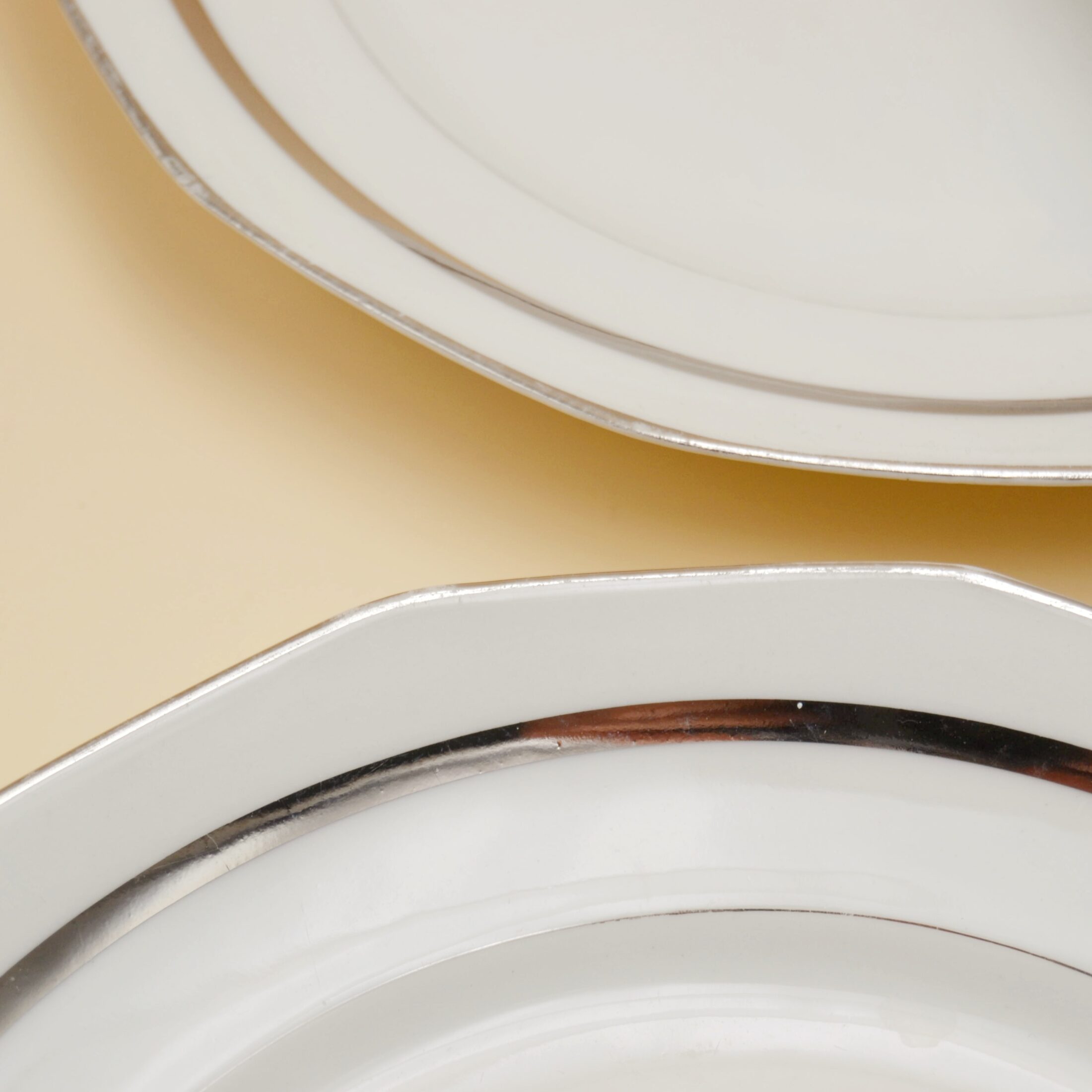 Les assiettes plates à liseré argenté