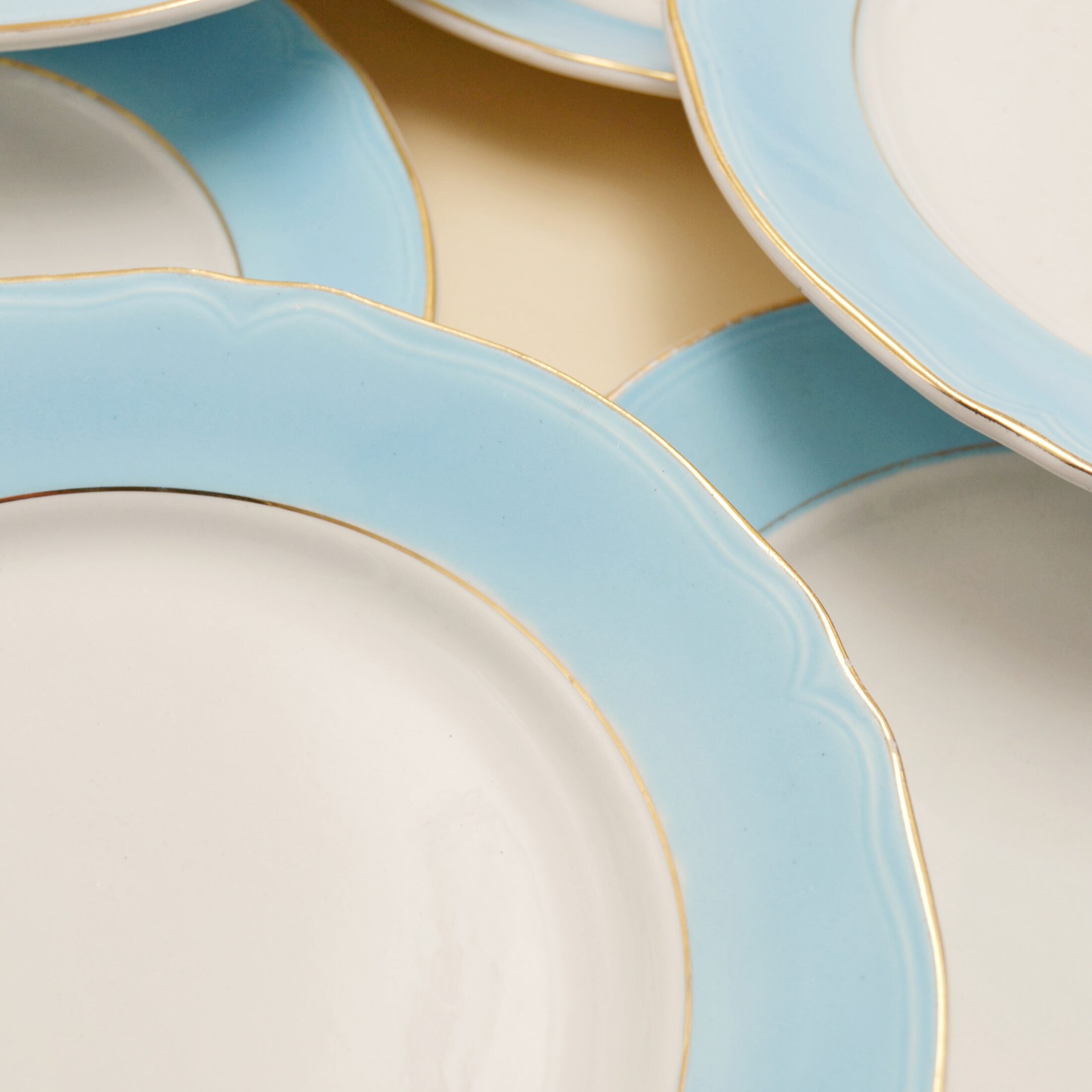Les assiettes plates à liseré bleu ciel