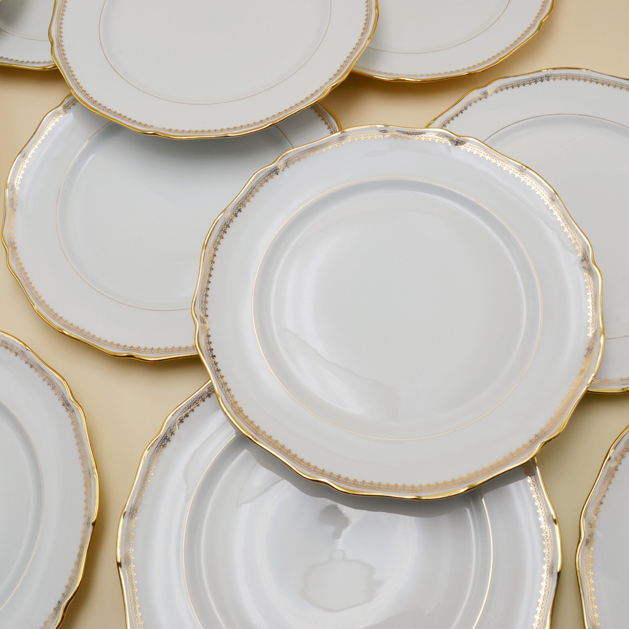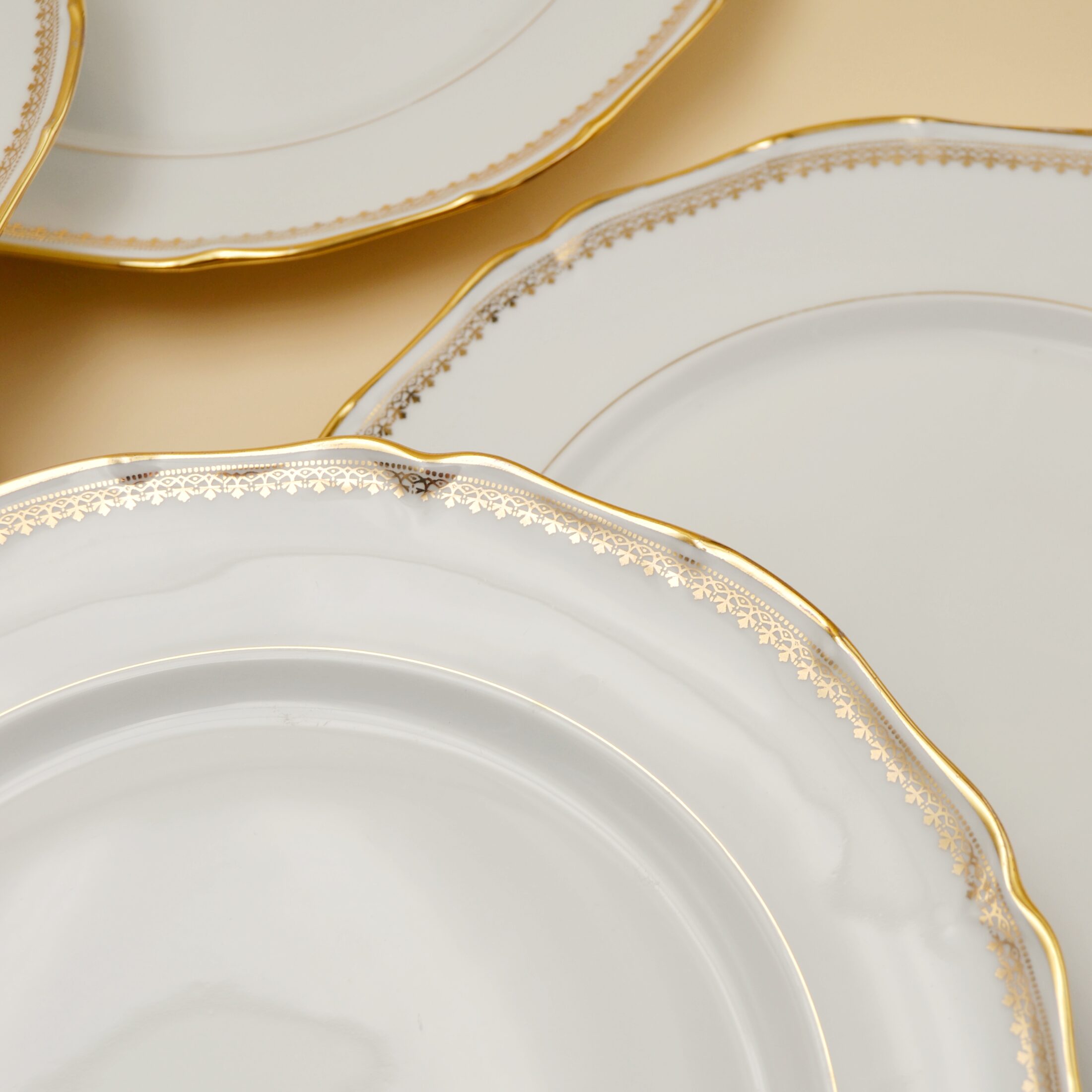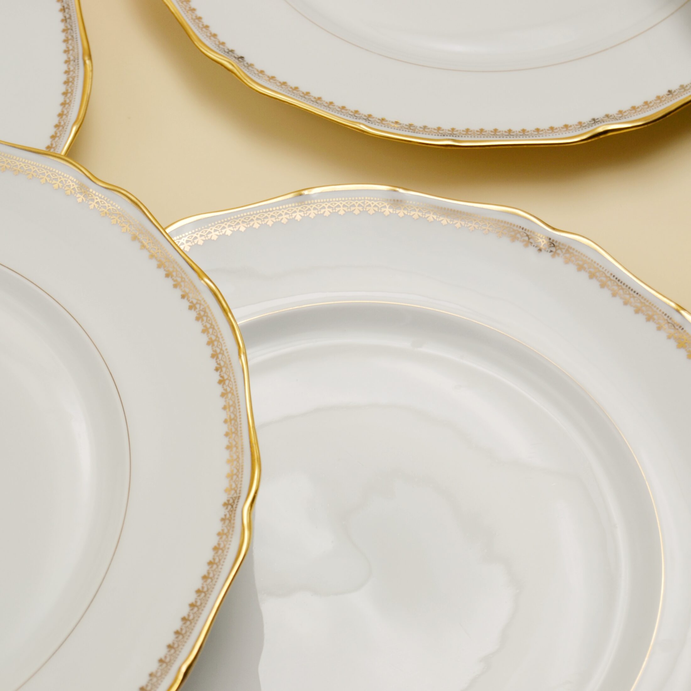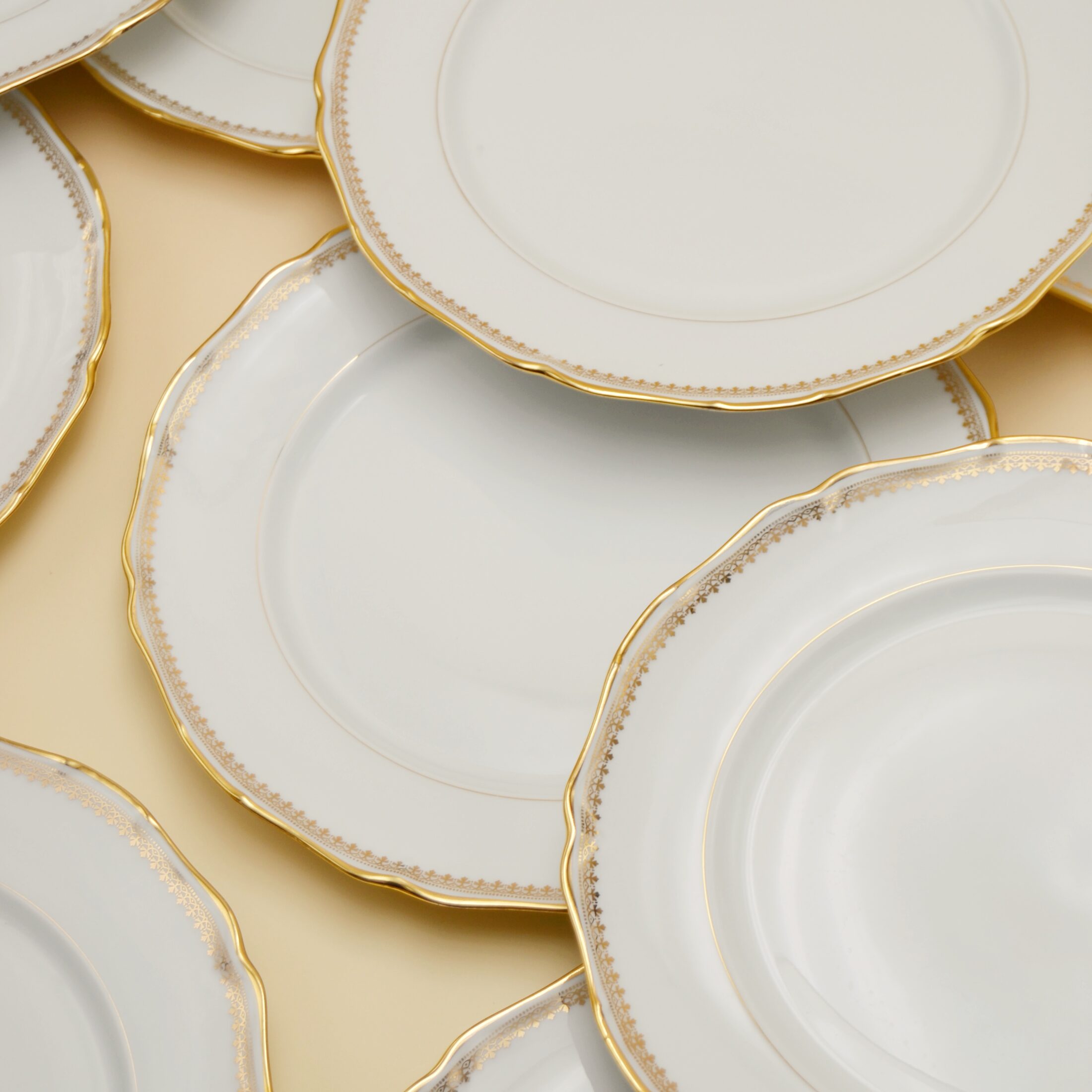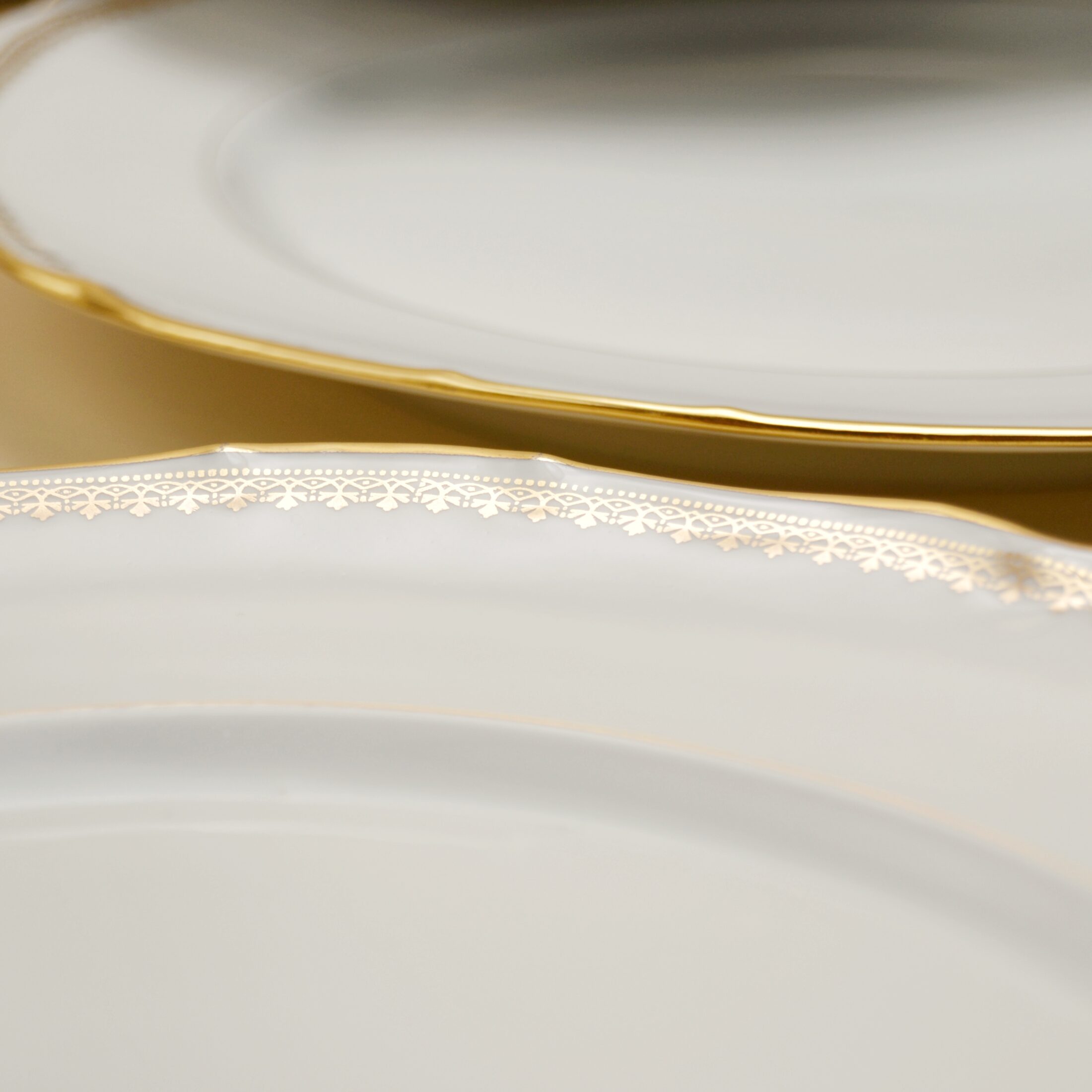 En porcelaine de Sologne, ces assiettes plates se distinguent par un liseré doré délicat et de fins motifs qui ornent subtilement le rebord. Leur style classique et raffiné sublime vos tables, qu’il s’agisse d’un dîner élégant ou d’une réception conviviale. Alliant tradition et sophistication, elles apportent une touche précieuse à chaque service et s’accordent aussi bien avec une vaisselle ancienne que contemporaine.