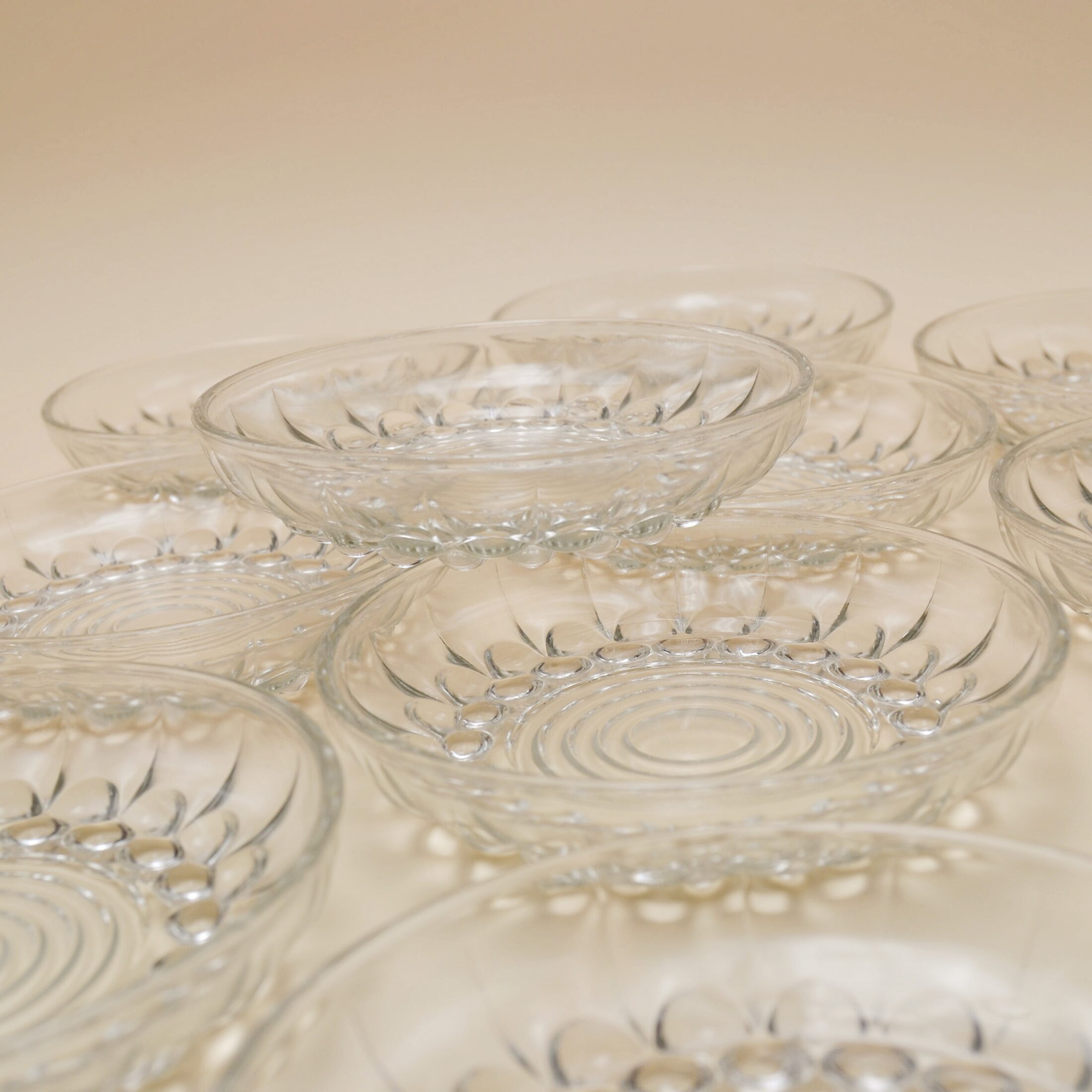 ✨ Jolies coupelles en verre à reliefs perlés, au design délicatement rétro.