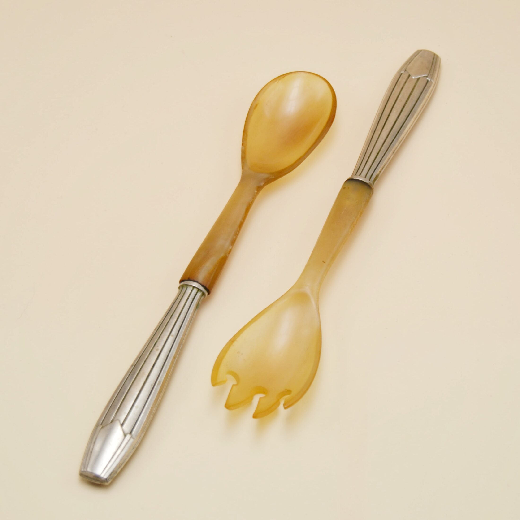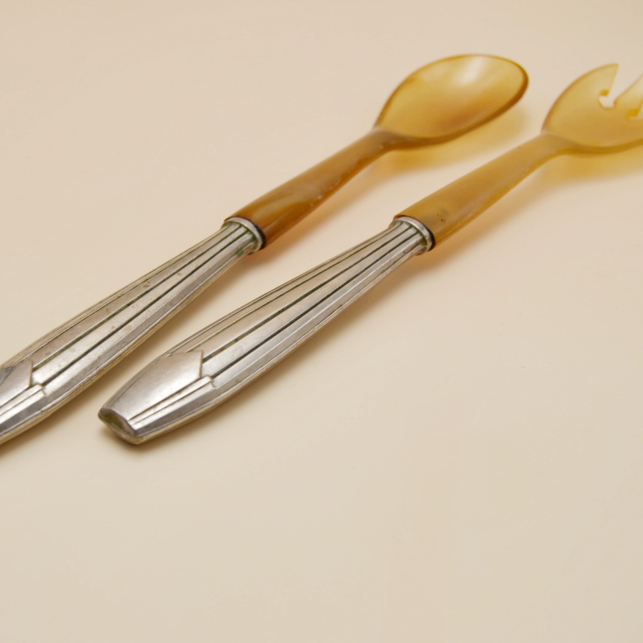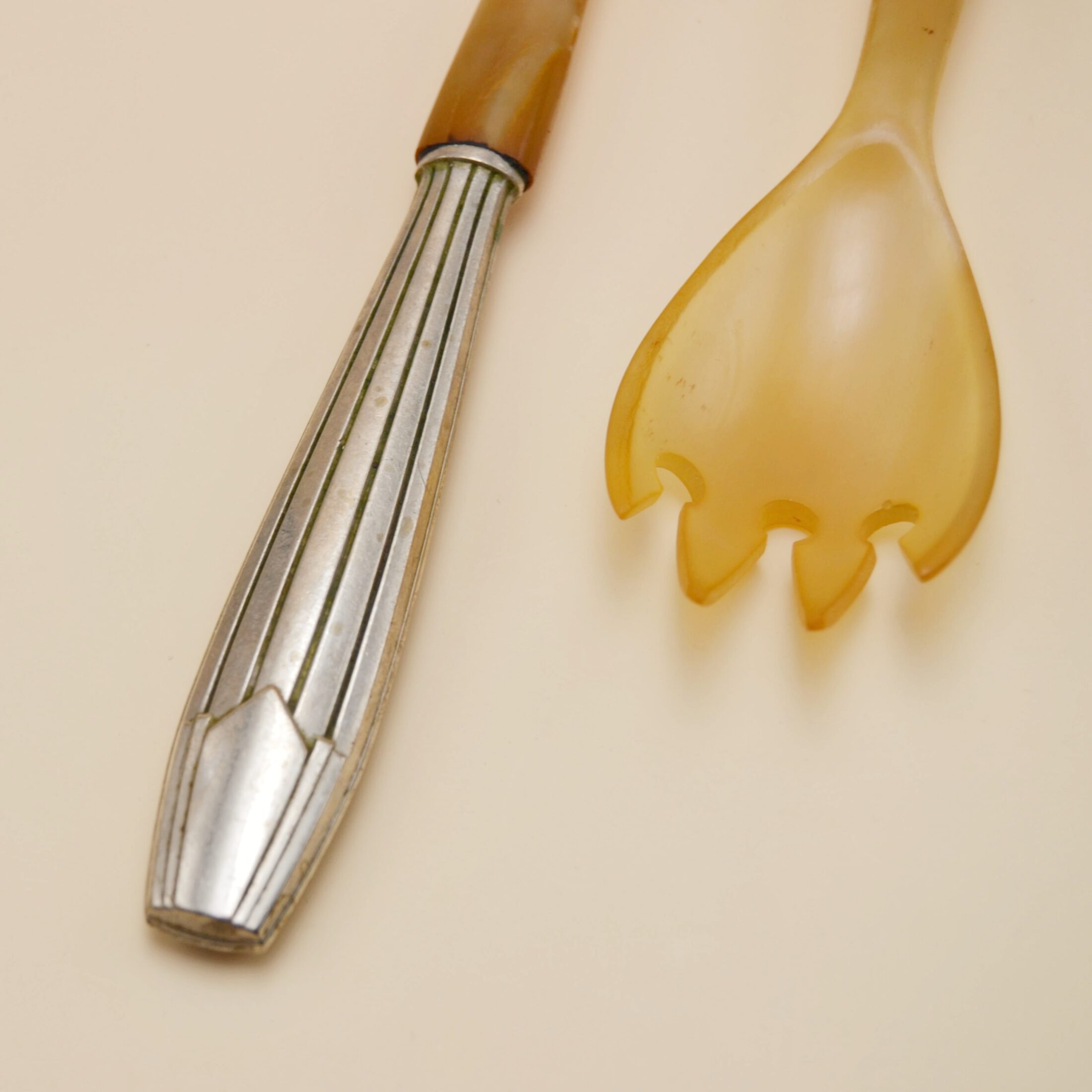 Les couverts à salade en métal et bakélite