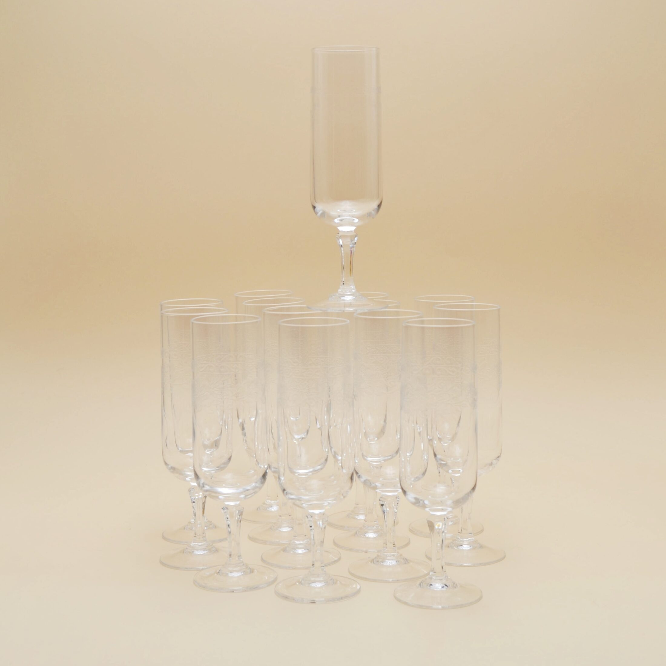 Taillées dans un cristal d’une grande pureté, elles présentent un décor finement ciselé qui reflète la lumière avec éclat. Leur silhouette élancée met en valeur les bulles dorées du champagne, pour des moments de dégustation empreints de raffinement et de tradition. Un service à la fois chic et intemporel, parfait pour les grandes occasions comme pour les plaisirs du quotidien.