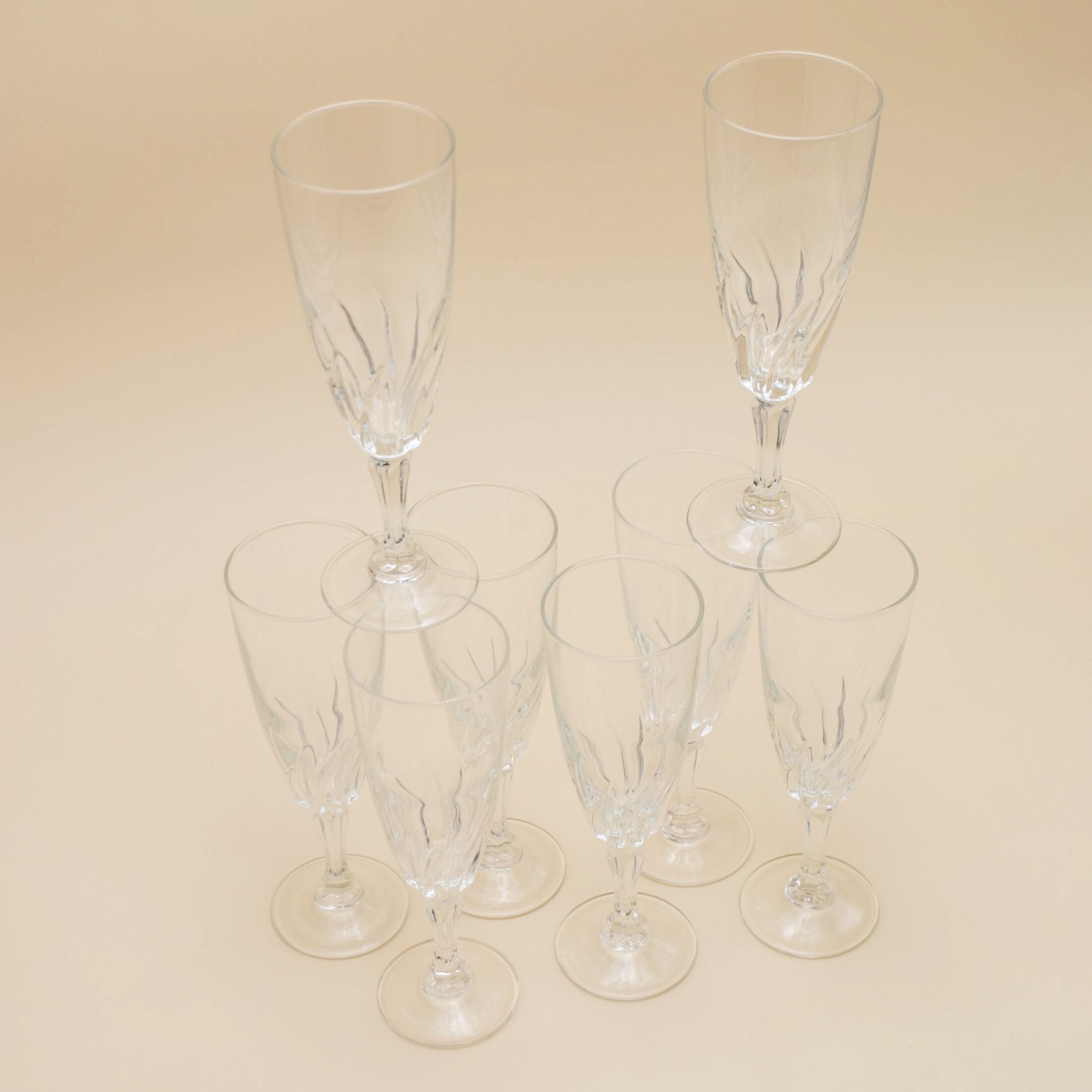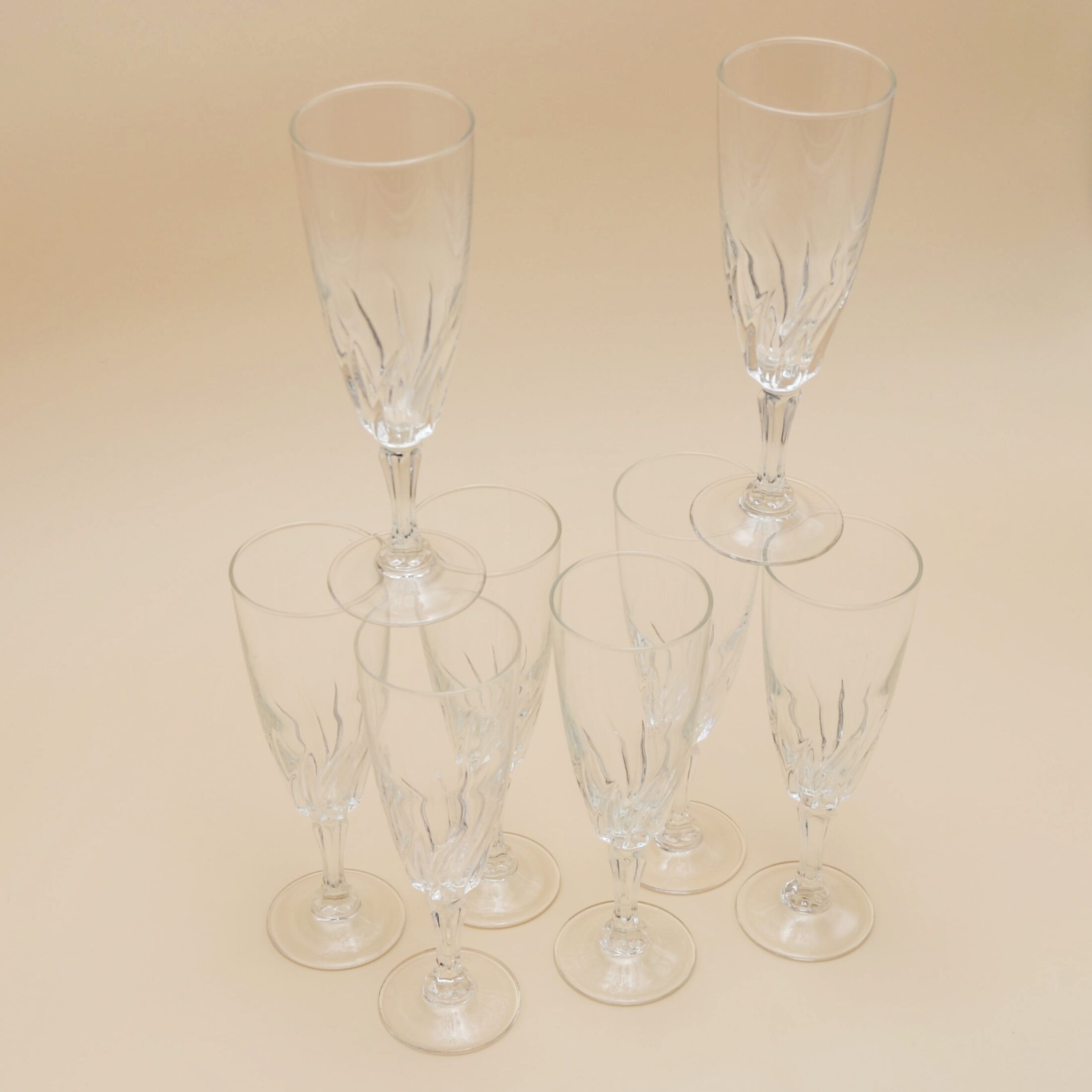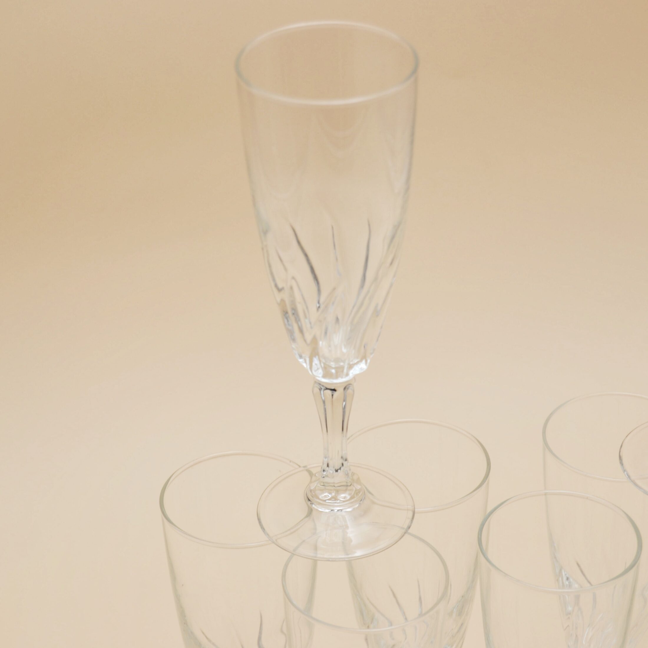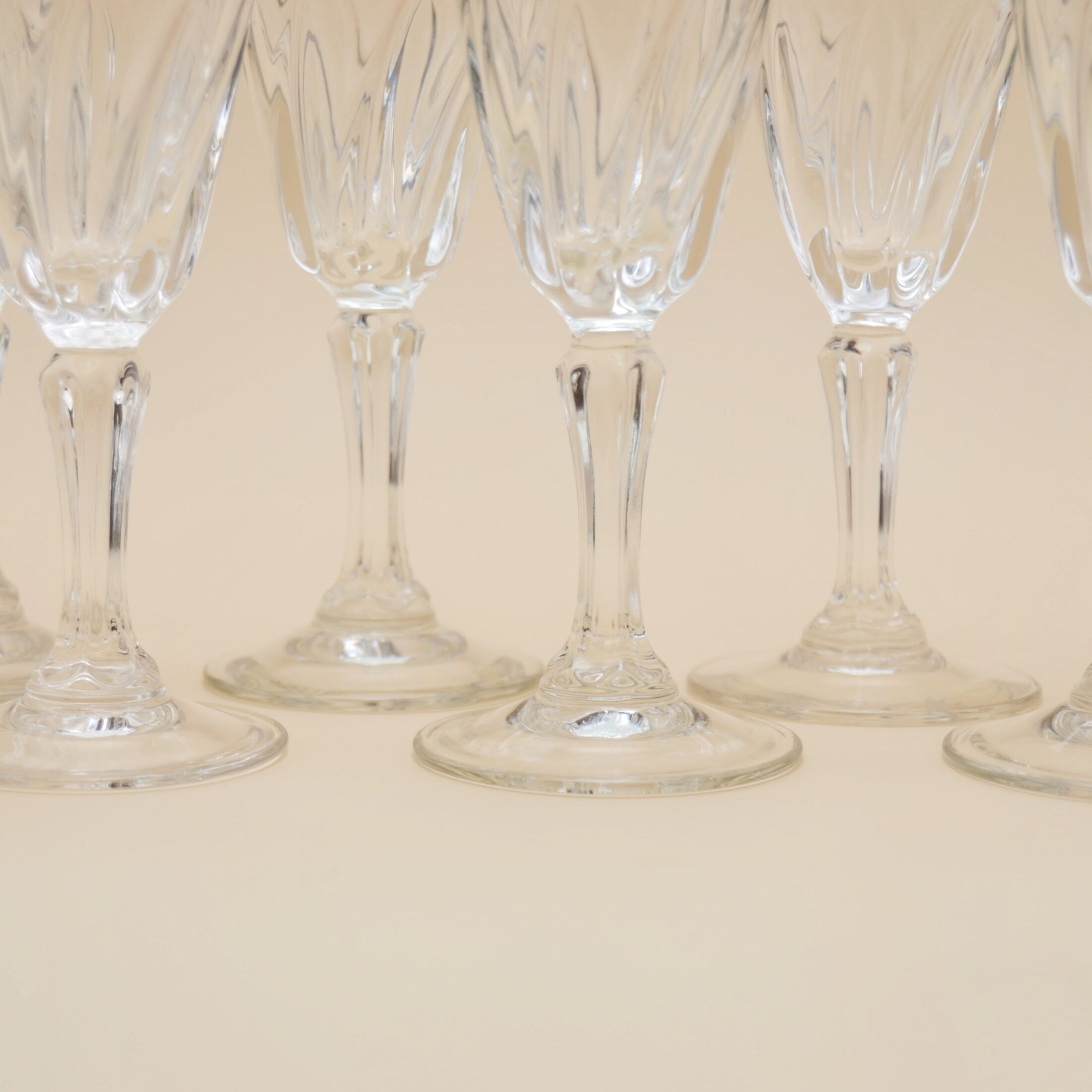 Elles se distinguent par leur pied élancé et fin, qui leur confère une allure élégante, ainsi que par le bas du contenant délicatement tourné, créant de subtils reflets lorsque la lumière s’y pose. Leur silhouette gracieuse met en valeur les bulles et sublime chaque dégustation. Parfaites pour célébrer les grandes occasions ou apporter une note chic à une table, ces flûtes allient finesse vintage et élégance sobre avec justesse.
