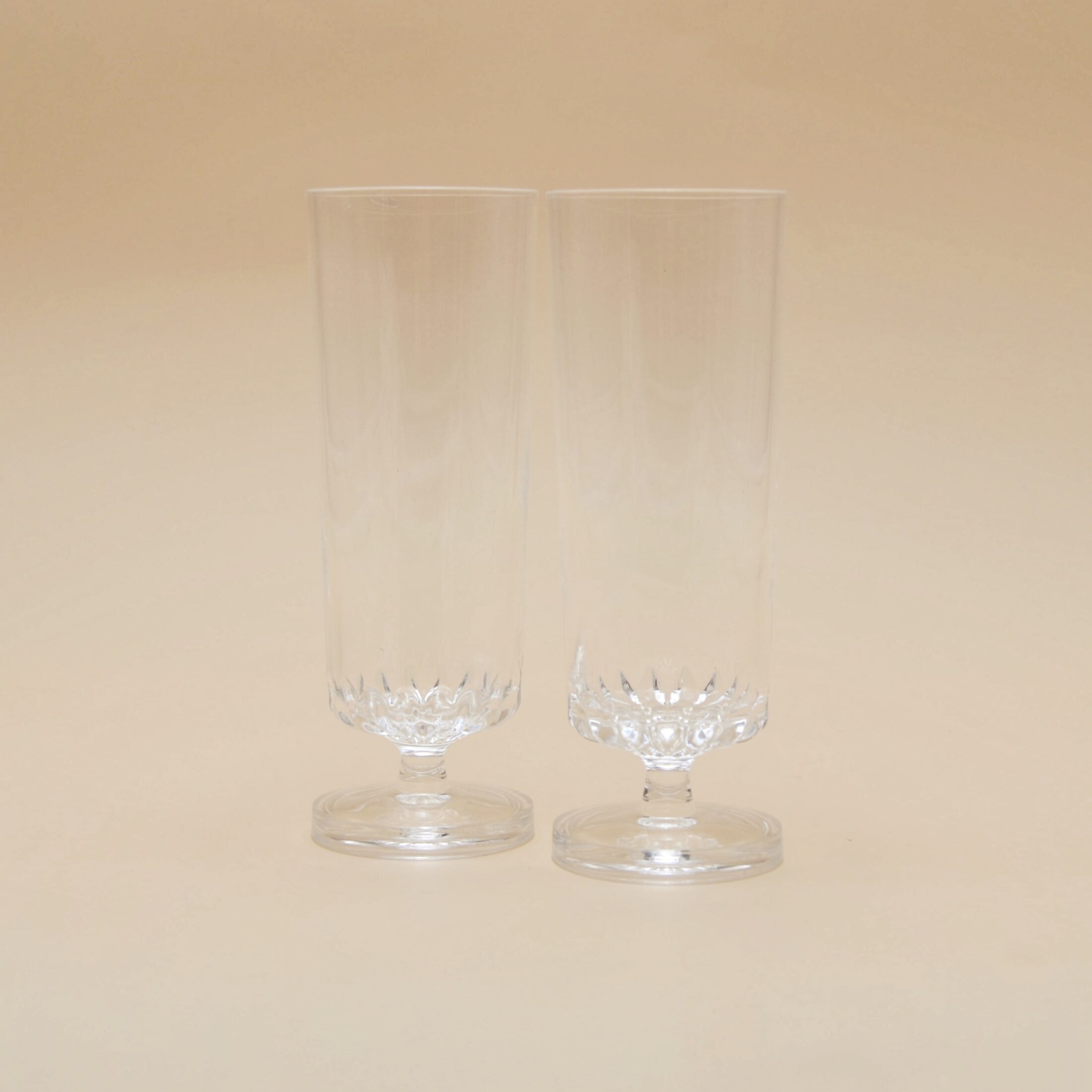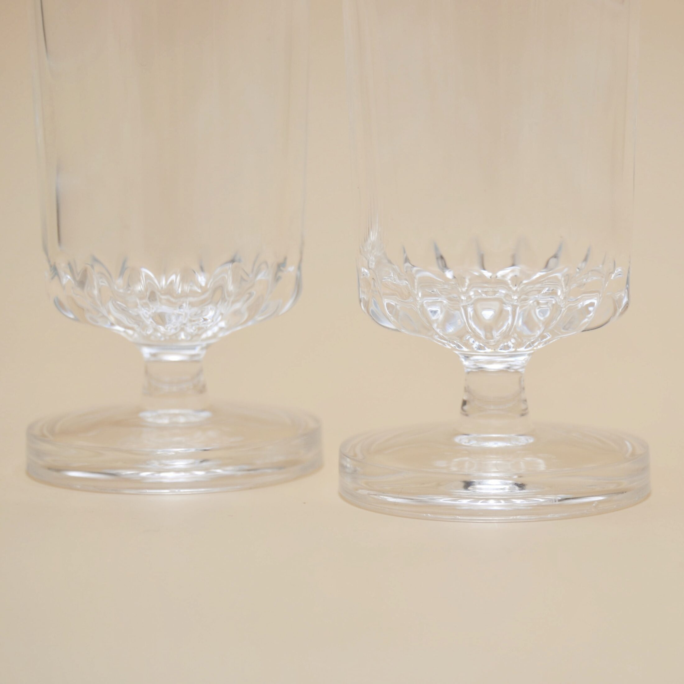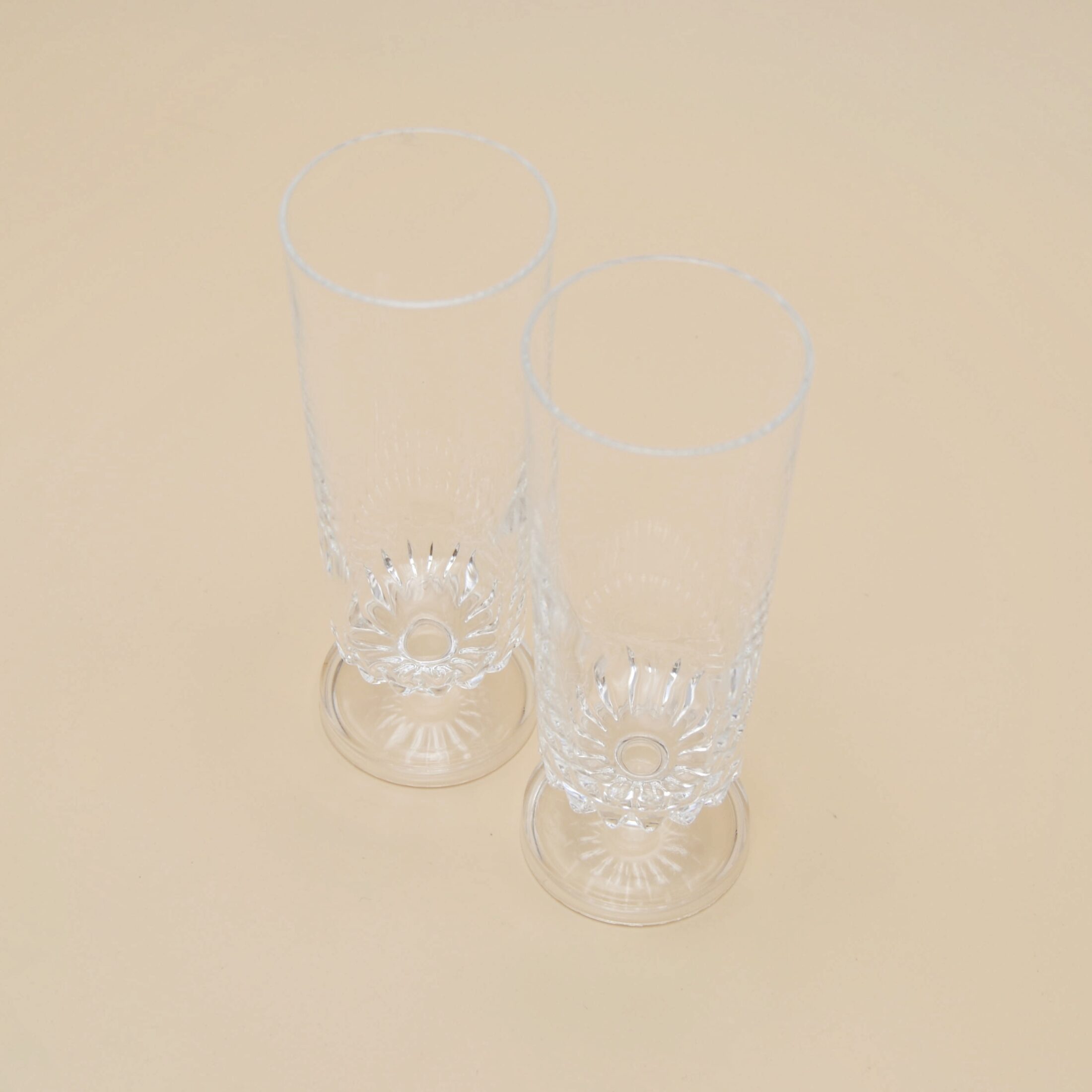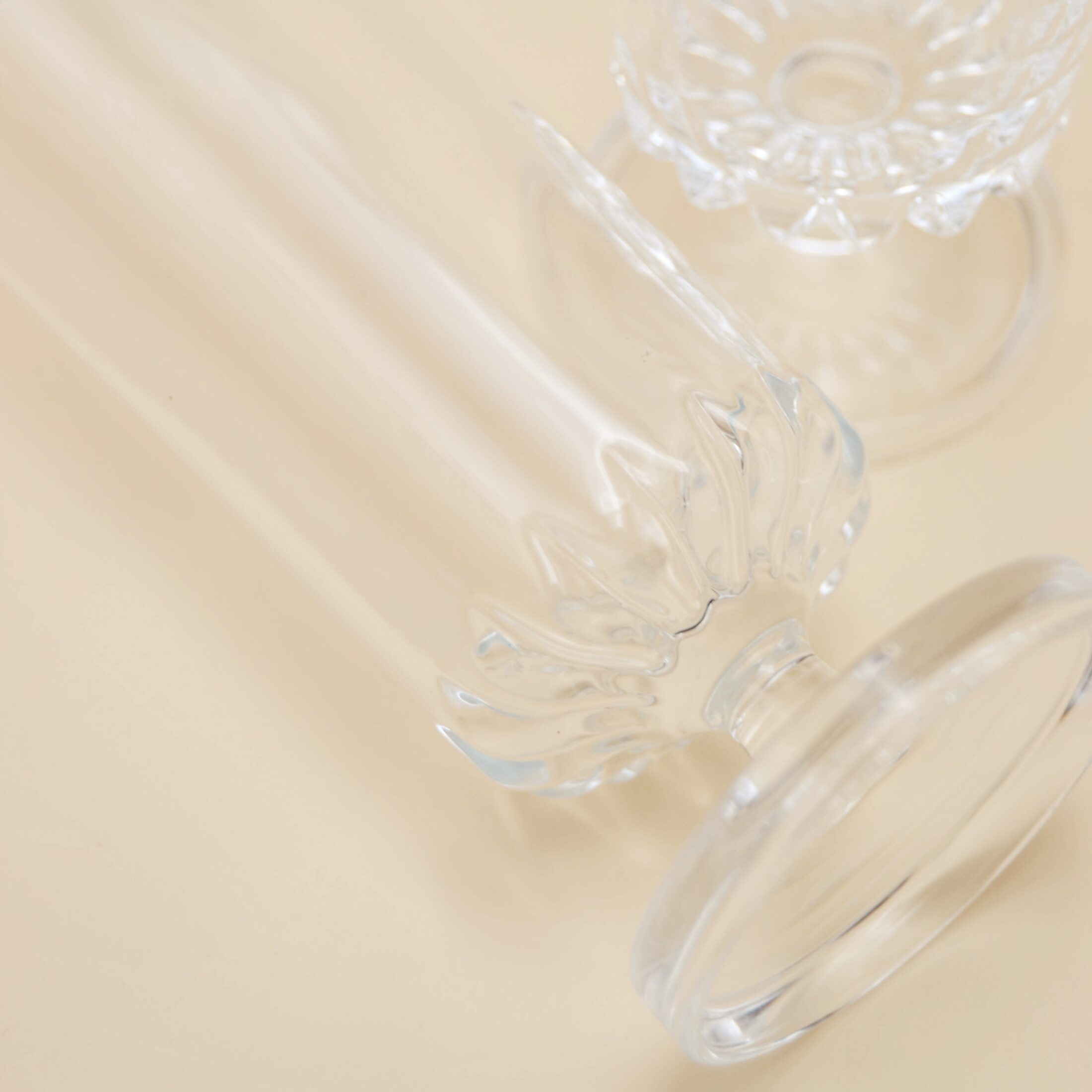 En verre finement travaillé, ces flûtes sur petits pieds délicats se distinguent par le dessous du contenant ciselé, qui capte la lumière et révèle toute la beauté du verre. Leur silhouette élégante et équilibrée apporte une touche de sophistication à vos tables, qu’il s’agisse d’un dîner intime ou d’une grande occasion. À la fois décoratives et fonctionnelles, elles subliment chaque service et mettent en valeur bulles et effervescence avec grâce.